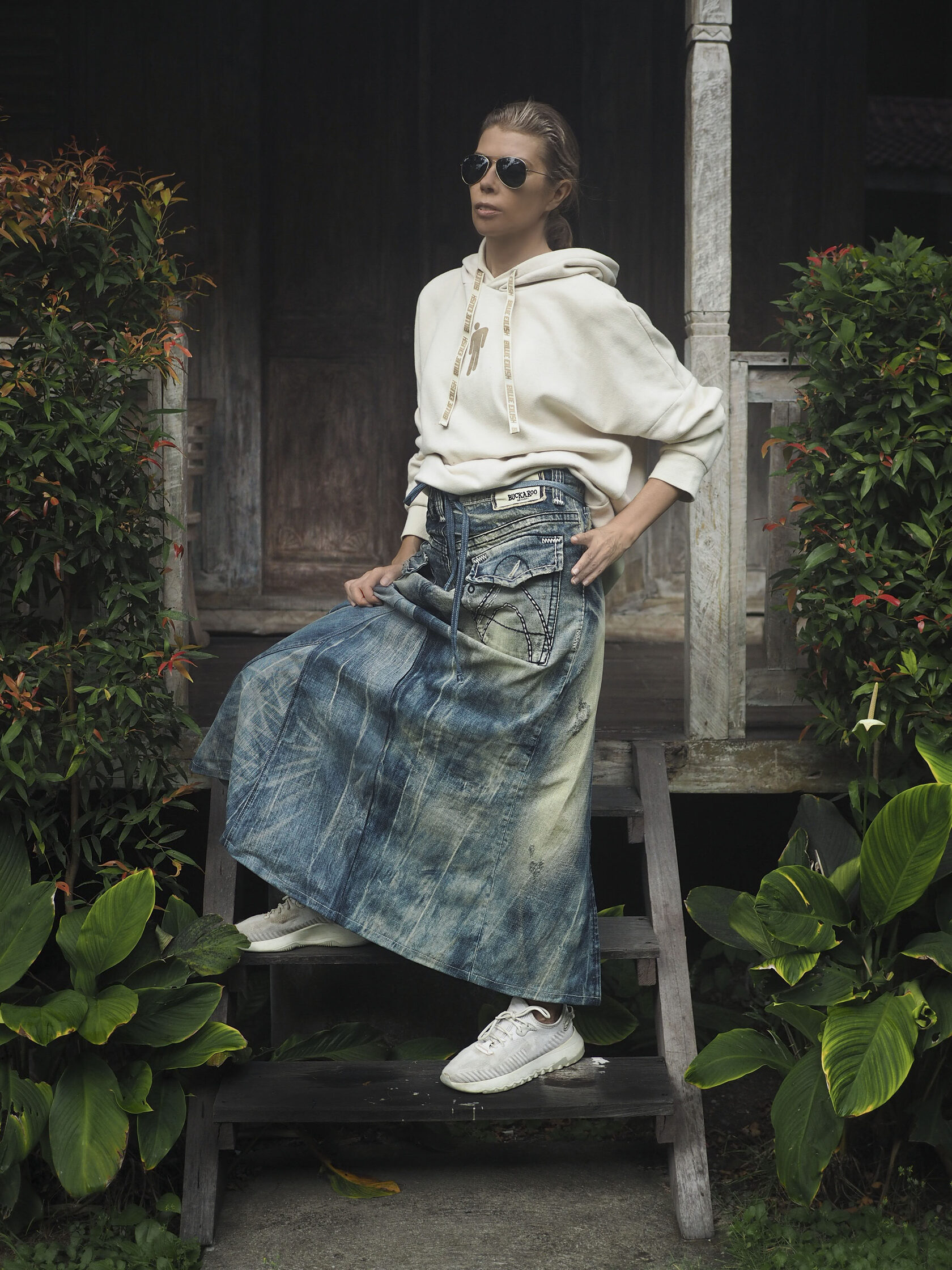 I adopted defected, old and recycled jeans to give them a new life! I create the new skirts, aprons and denim dresses for women.